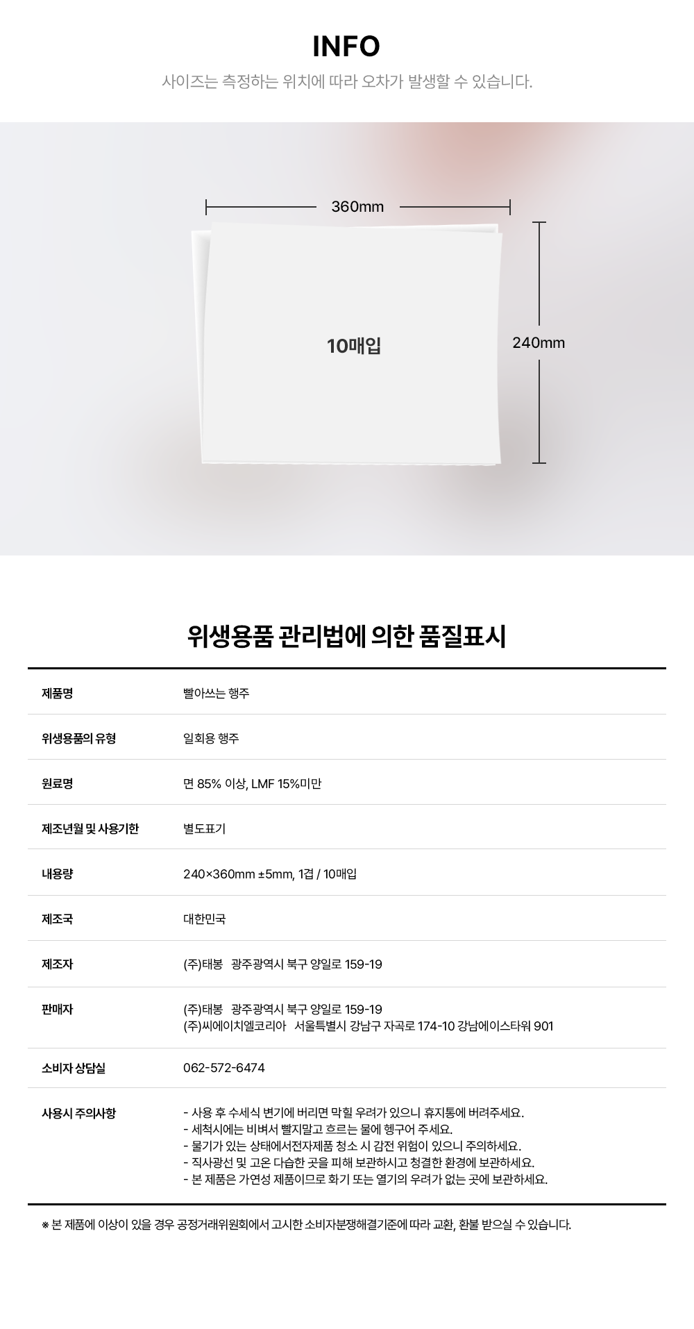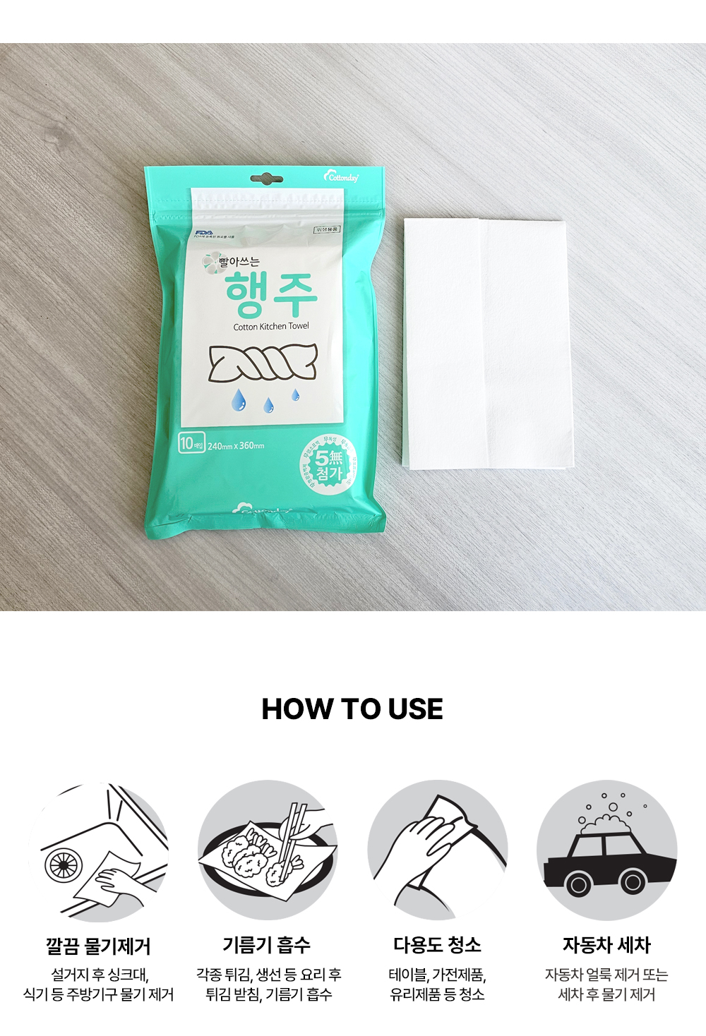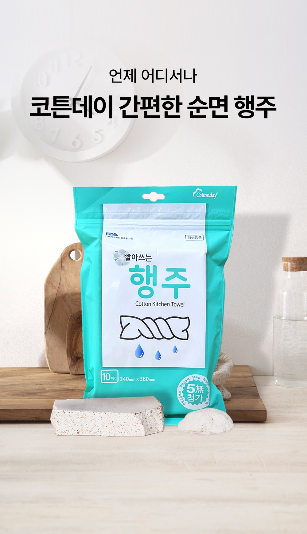 코튼데이 간편하게 빨아쓰는 행주 10매 1개